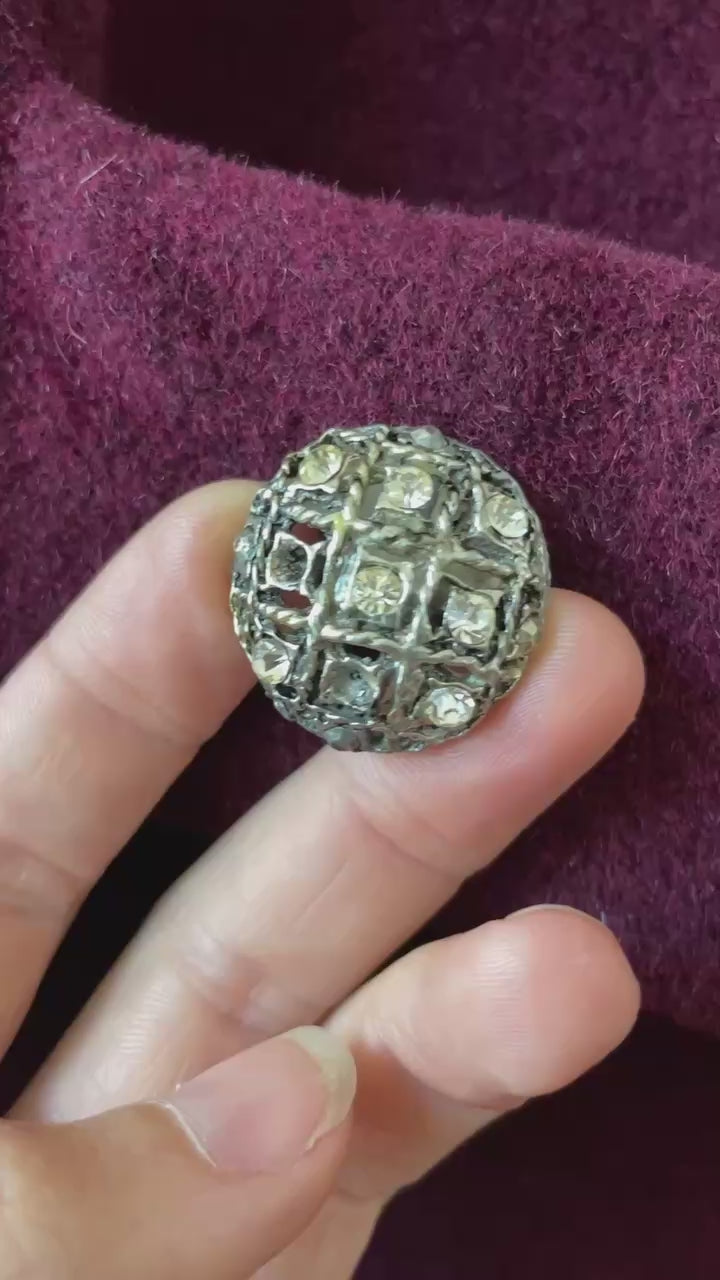 Vintage 1950s burgundy mid-length wool coat from vintage designer, Lilli Ann. Features rhinestone buttons, two double welted hand pockets in the front, and a single covered-button closure at the neckline. Our favorite part might be the architectural pleating around the cuffs. Fully lined. The wool drapes beautifully and the burgundy is so flattering. For more information about Lilli Ann: https://vintagefashionguild.org/resources/item/label/lilli-ann/. In amazing vintage condition - no signs of holes or stains.