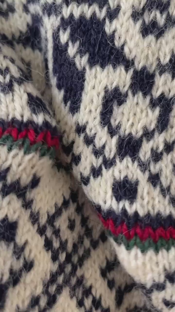 Adorable vintage LL Bean wool cardigan sweater with metal buttons down the front. Features a knit design of snowflakes and hearts, perfect for the winter season. In perfect vintage condition - no signs of holes or stains.